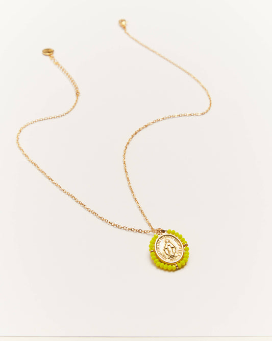 Santa Maria Yellow - collier médaille dorée avec pierres