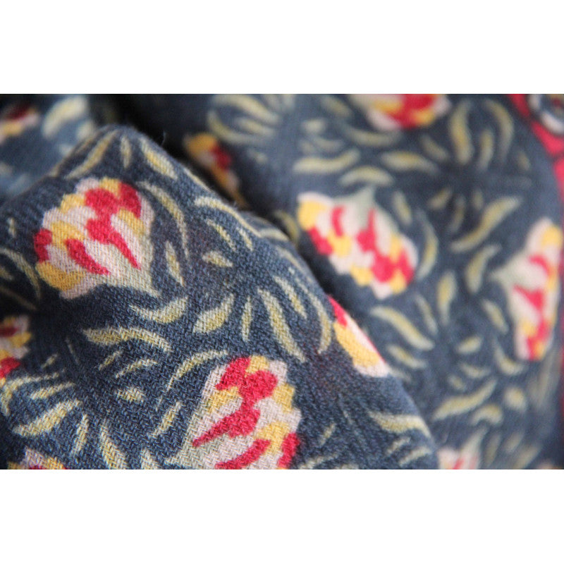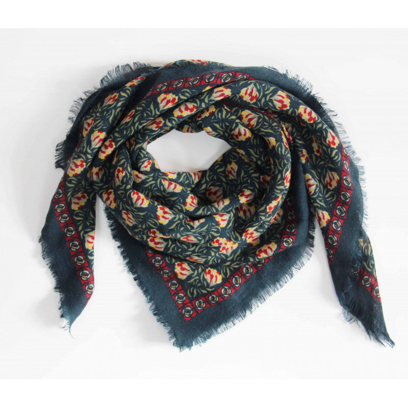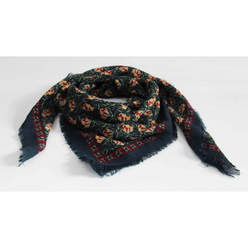 Découvrez ce carré de laine marine aux teintes profondes et nuancées, fruit d'un savoir-faire artisanal franco-indien. Tissé avec soin pour offrir une légèreté remarquable et une douceur incomparable, ce 100% laine de 100 x 100 cm se drape avec élégance. Chaque pièce, dessinée à la main en France puis imprimée traditionnellement en Inde, devient un accessoire intemporel. Présenté dans une pochette cadeau en tissu, il séduira les amateurs de pièces authentiques et raffinées.