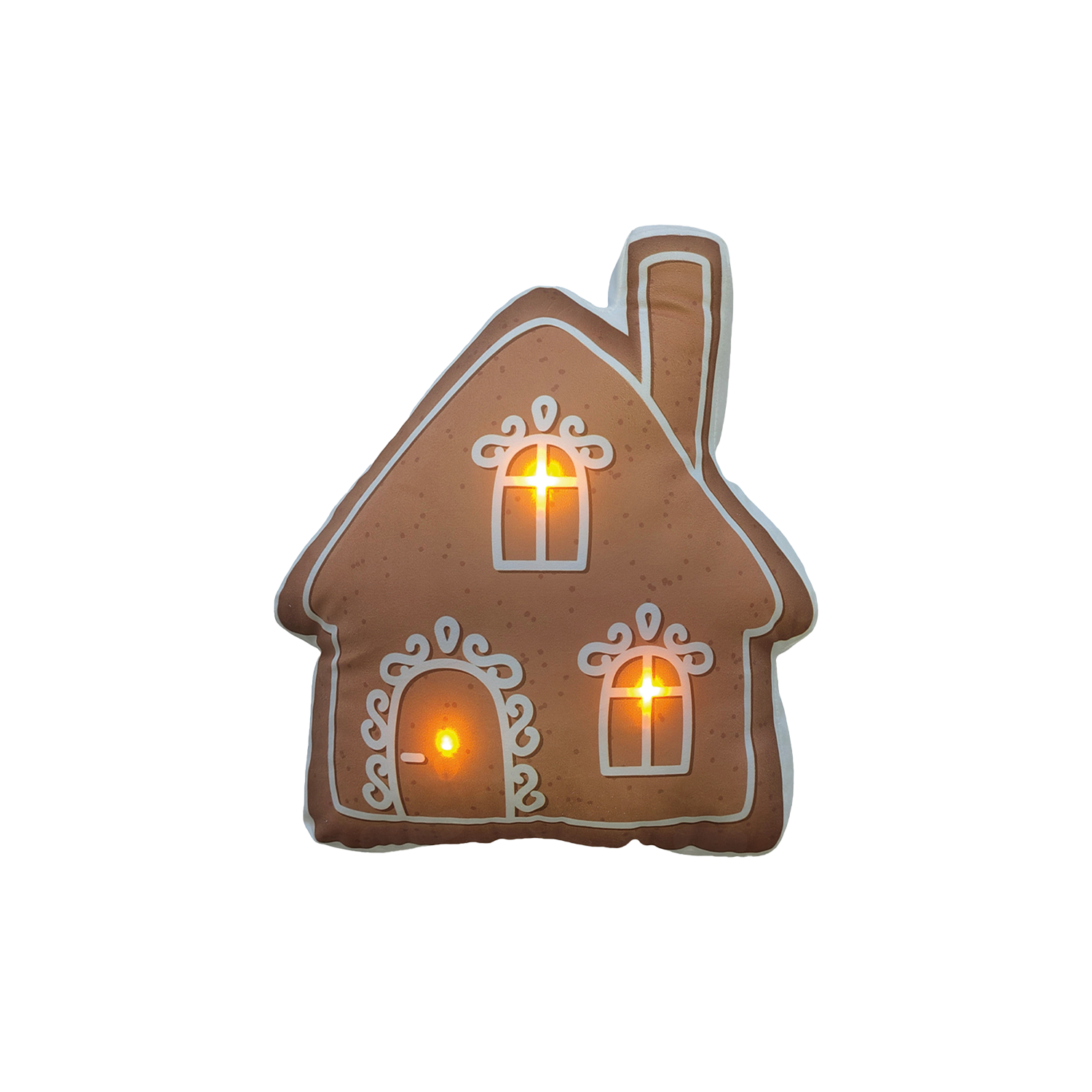 Coussin LED maison marron 40x36cm