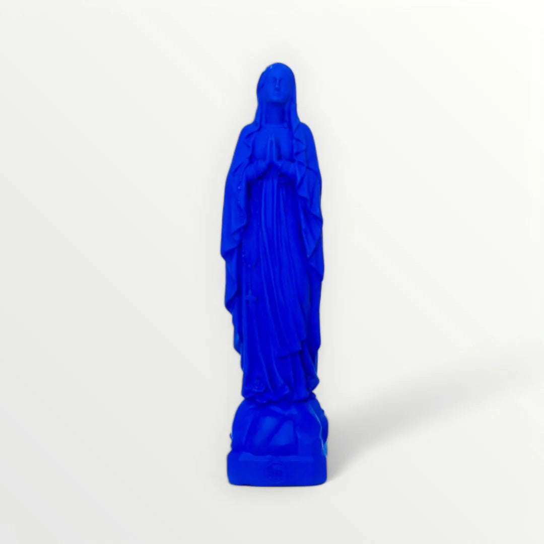 Cette statuette de 17 cm représente Notre-Dame de Lourdes dans un style monochrome à la fois épuré et contemporain. Moulée en résine et peinte à la main dans nos ateliers marseillais, elle incarne avec finesse l'Immaculée Conception. Ce décor spirituel et moderne apporte une présence apaisante et sacrée à votre intérieur, mêlant tradition et élégance artistique pour honorer la Vierge Marie avec éclat et respect.