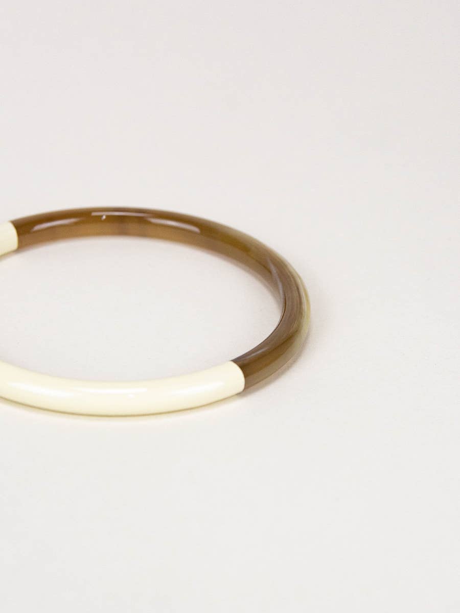 Jonc simple en corne blonde avec laque ivoire