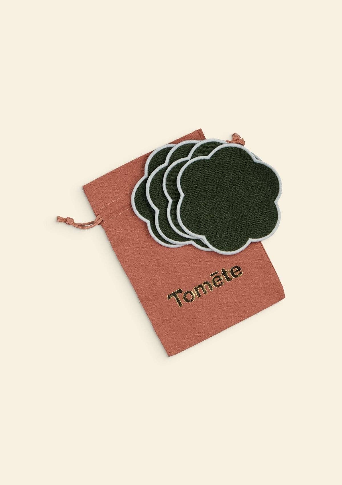 Les dessous de verre festonnés en lin Vert forêt & Blanc (lot de 4)