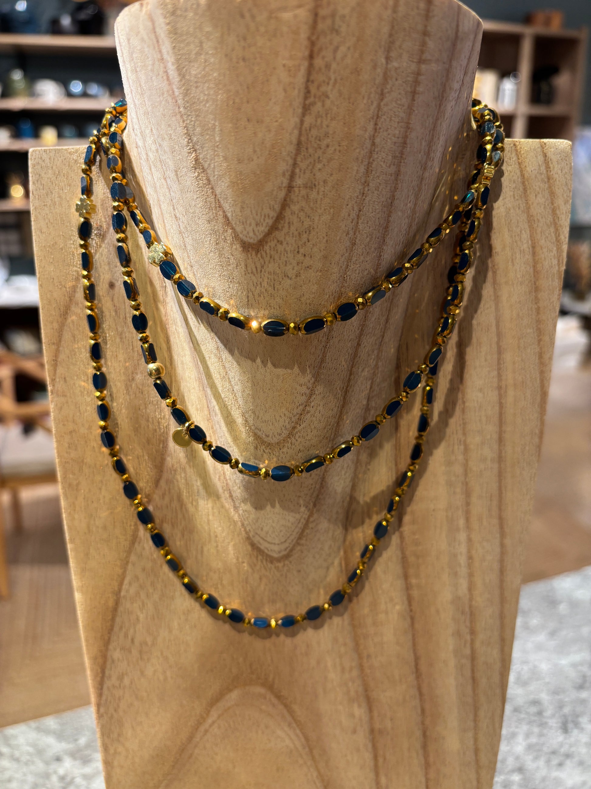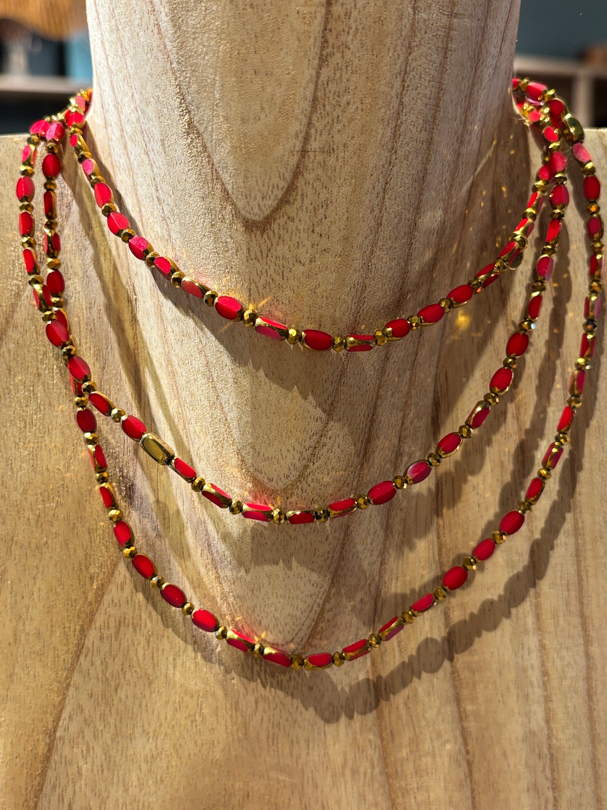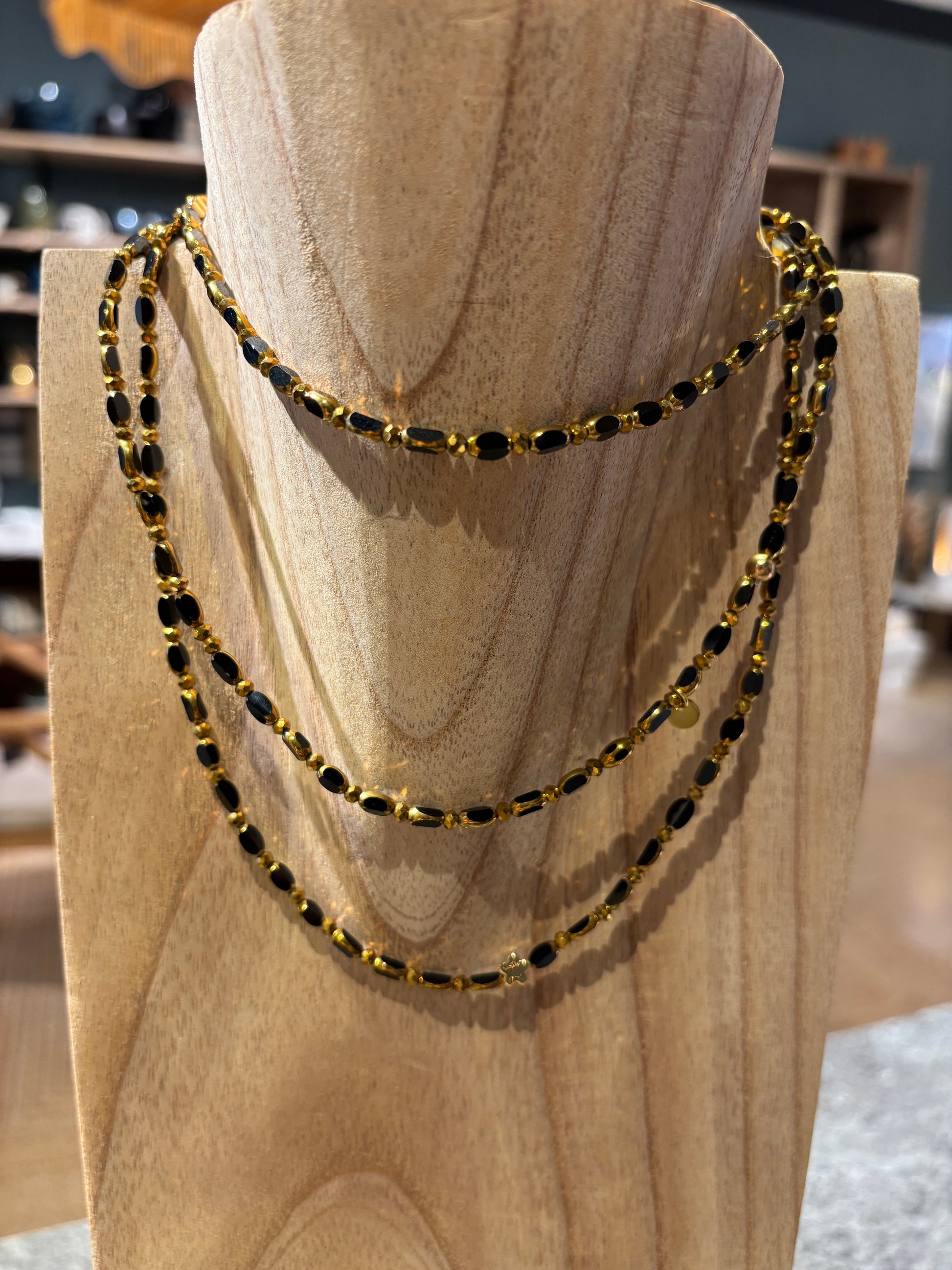 Chaque collier est confectionné perle par perle, à la main par une créatrice basée à St Didier au-Mont-D'or. Peut se transformer en sautoir, collier et bracelet